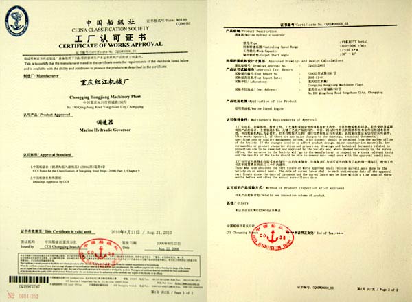 中國(guó)船級(jí)社認(rèn)可證書(shū)——調(diào)速器