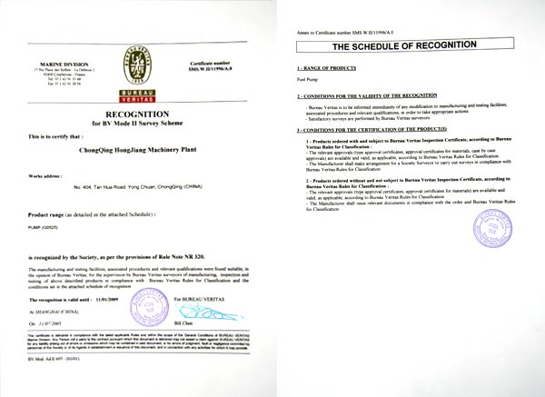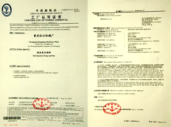 中國(guó)船級(jí)社認(rèn)可證書(shū)——噴油泵及偶件